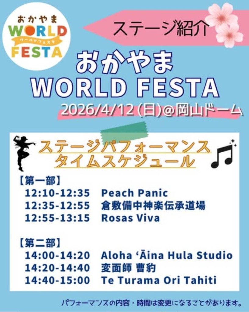 おかやまWORLD FESTA 26/4/12、出演決定‼