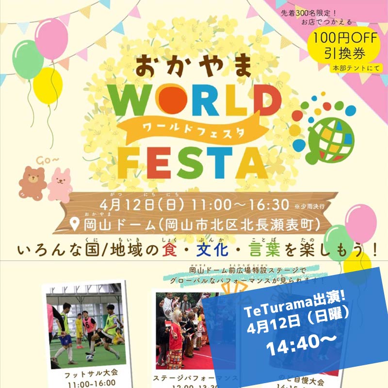 おかやまWORLD FESTA 26/4/12、出演決定‼